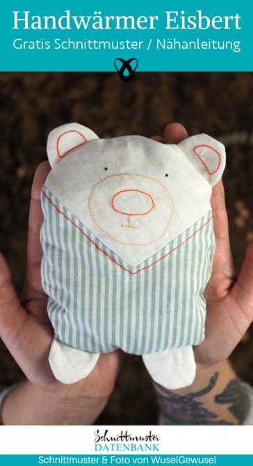 Handwärmer Eisbert nähen: Dieser niedliche Eisbär sorgt an kalten Tagen für warme Hände und gute Laune. Das kostenlose Schnittmuster ist ideal für Winterprojekte und kleine Geschenkideen … Mehr erfahren!