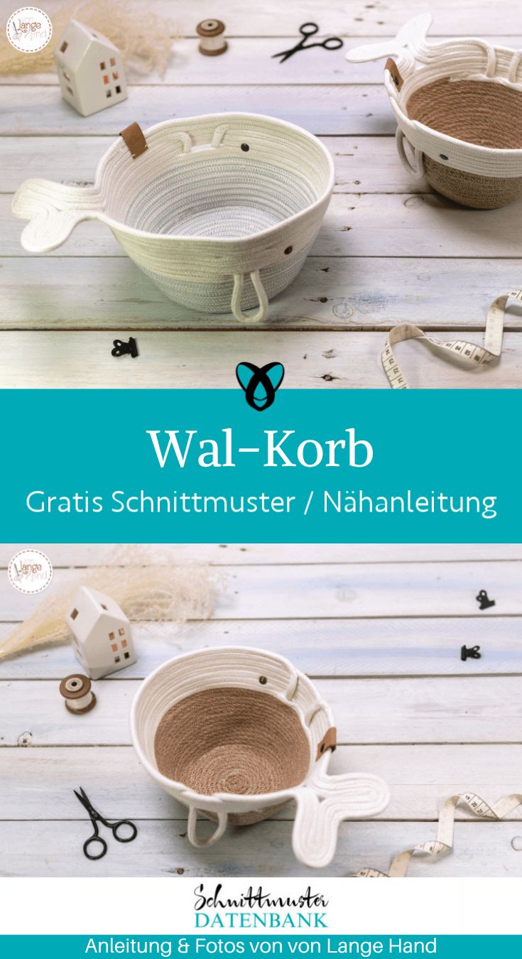 Wal-Korb aus Seil nähen: Diese süße Nähidee bringt frischen Wind in dein Zuhause und sorgt garantiert für gute Laune im Kinderzimmer oder Nähbereich. Das kostenlose Freebook zeigt dir, wie du aus einfachem Baumwollseil einen praktischen und dekorativen Aufbewahrungskorb in Wal-Form zaubern kannst. Die Anleitung findest du auf dem Blog von von Lange Hand und sie ist auch für fortgeschrittene Anfänger gut machbar.